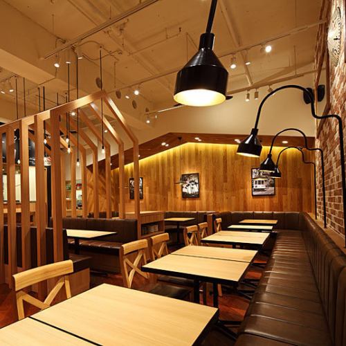 木の温もりがオシャレで落ち着いた空間の中、親しい友人と買い物帰り、作業にもピッタリ。